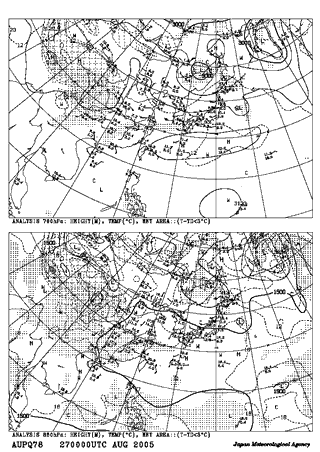 2005年8月27日 9:00地上天気図 2005年8月27日9:00高層天気図 700hpa 850hpa