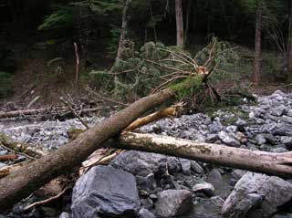 昨年(2004年)8-9月に襲来した台風やその間の集中豪雨などで、大きな災害を受けた西熊渓谷であるが、今年(2005年)の台風14号も再び この溪谷に大きな爪痕を残した。