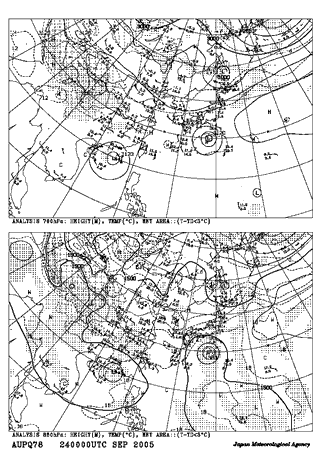 2005年6月25日 9:00地上天気図 2005年6月25日9:00高層天気図 700hpa 850hpa