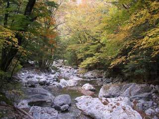 お亀岩で 朝日を浴びる 山々を満喫する。カンカケ谷に入ると 紅葉が きれいだ。