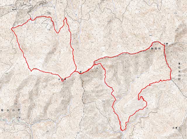 - 徳島県祖谷側のコースと 高知県西熊溪谷堂床のコースとを 一緒に絡めた8の字型周回です。