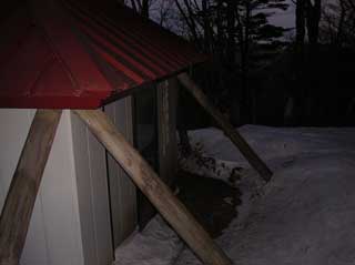 丸石避難小屋は ドアが凍っているのか 開かなかった。
