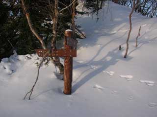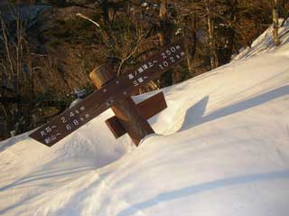 奥祖谷かずら橋への下降点の標識は雪で完全埋没していた。