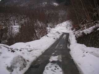 神社の付近は雪が多い。 リフトとクロスする場所の コルゲート トンネル部は 雪に埋まっていて 上を通る。