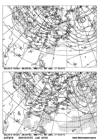 平成18年1月29日 9:00地上天気図 平成18年1月29日9:00高層天気図 700hpa 850hpa