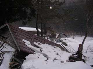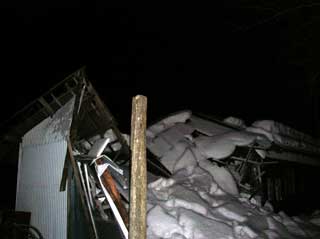 深淵の建物のいくつかが 大雪で押しつぶされている。