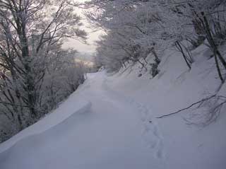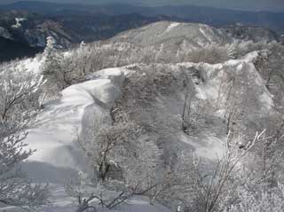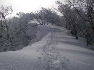 この付近の夏道は狭い稜線を北西側に捲いたりするが