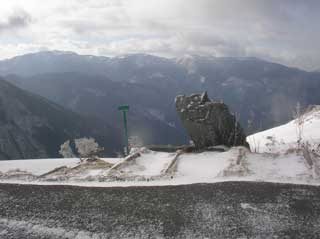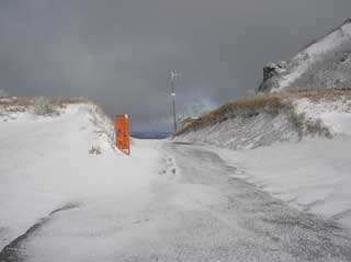 ヘアピンカーブの先で工事を一時行っていたらしく、除雪した痕があったが、工事は現在休止中だ。