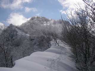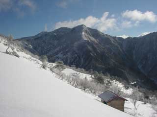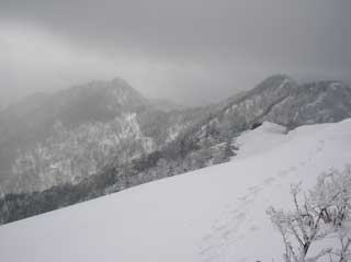 HOME > 山行記録 >積雪期>矢筈山(1848)石堂山(1636)白滝山(1526)火打山(1422)風呂塔81401)東祖谷山村より>平成18年2月4日