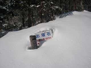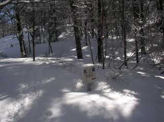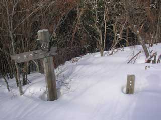 石堂山の手前の水場標識や5号標識 お塔石標識など 1月2日は完全埋没だったがも 今回は 露出していた。