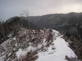 白滝山のあとは 下りになっていって だんだん雪も少なくなってくるが、代わりに 藪も増えてくる。