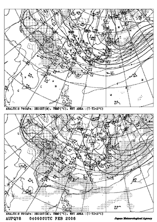 平成18年2月4日9時 地上天気図 平成18年2月4日9時高層天気図700hPa 850hPa