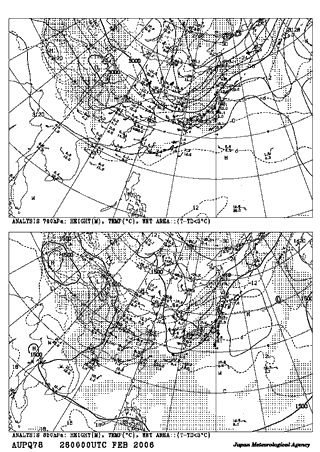 平成18年2月26日 9:00地上天気図 平成18年2月26日9:00高層天気図700hpa 850hpa