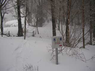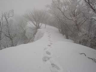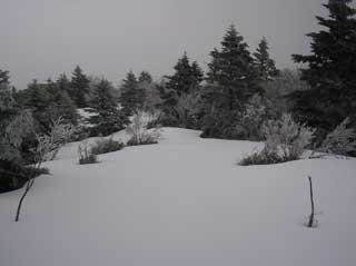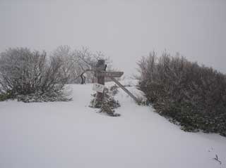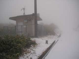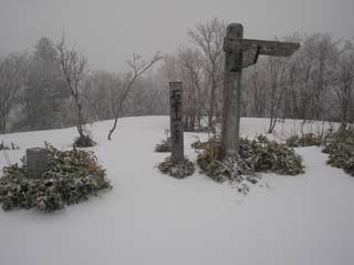 矢筈山頂「マイナス6.1度 5-6m 雪 新雪積もり、視界50mくらい。