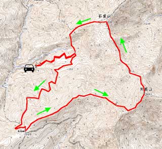 --石堂山 (13:18-13:32)----徒渉地点14:40---林道14:53---駐車地点15:09