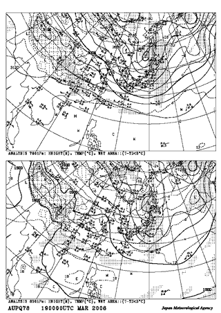 平成18年3月19日9時 地上天気図 平成18年3月19日9時 高層天気図 700hPa 850hPa