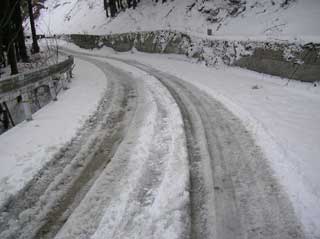 平成18年は4月というのに また寒波襲来で、 新雪が林道に積もっている。