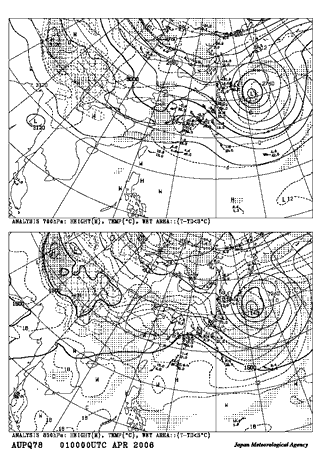 平成18年4月1日 9:00地上天気図 平成18年4月1日9:00高層天気図700hpa 850hpa