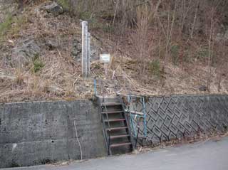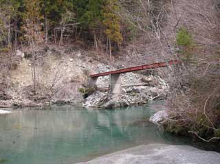 少し下流の砂防堰堤工事用の橋は傾いていて危険だった。