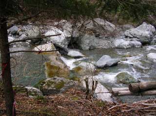 谷道川へかかる橋で休憩後、林道を歩き谷道から谷道川を徒渉。