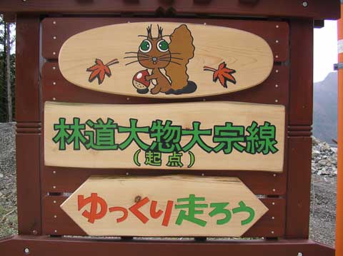 大惣大宗線(一宇工区)を1.1km歩くと林道大惣線へでた。木地屋方面は通行止めだが、大惣へは通行可能。
