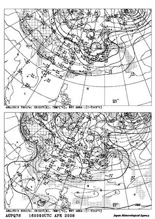 平成18年4月16日 9:00地上天気図 平成18年4月16日9:00高層天気図700hpa 850hpa