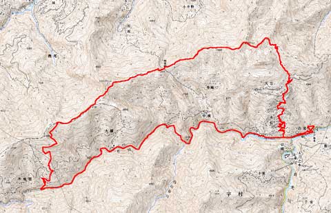 13:27--津志嶽 電力保線道入り口 13:33--大横 桂入り口 13:51--内山川谷合流点 14:16--