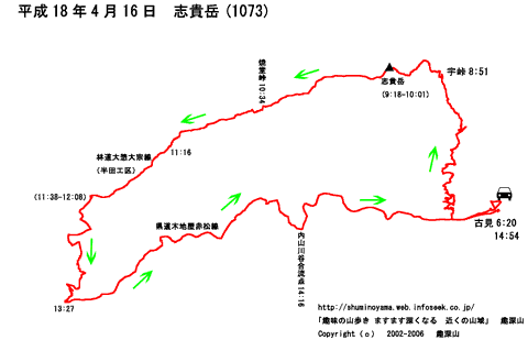 HOME > 山行記録 >無雪期>志貴岳>平成18年4月16日