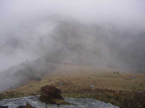 カヤハゲ下りで、一瞬、ガスが切れ白髪分岐方面がすこし見えた。