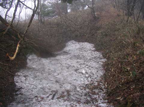 お亀岩への下りの途中、残雪があった。