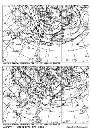 平成18年4月29日 9:00地上天気図 平成18年4月29日9:00高層天気図700hpa 850hpa