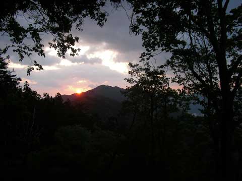 林道大惣大宗線(半田工区) 工事最先端箇所で志貴岳 付近からの朝日を見る。