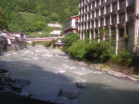 国道438号切越まで降りてくると、貞光川が増水していた。