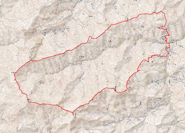 標高差470mを登り返し、大宗の最上部にくると、ぐるっと辿ってきた片川周回コースが一望の下に見えた。