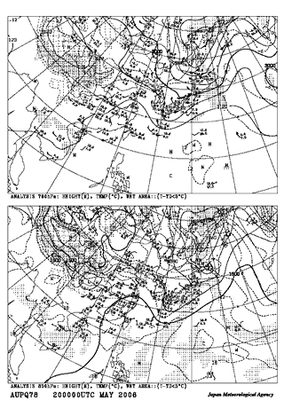 平成18年5月20日 9:00地上天気図 平成18年5月20日9:00高層天気図700hpa 850hpa