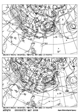 平成18年5月28日 9:00地上天気図 平成18年5月28日9:00高層天気図700hpa 850hpa