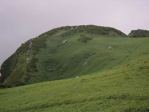 三嶺ヒュッテから見ると続々と大勢の登山者が登っていっているのが見えた。