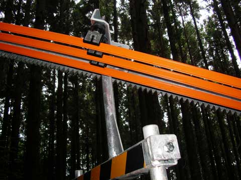 まもなくモノレールの営業運転が始まる。電流が流れ出したら、ザックにつけたトレッキングポールやスキーポールなど気をつけないと危ない。