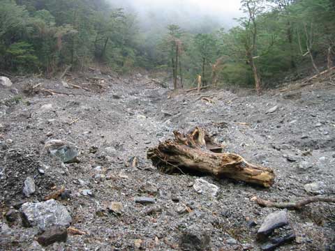 崩壊直後フスベヨリ谷は荒れ果てた光景だった。