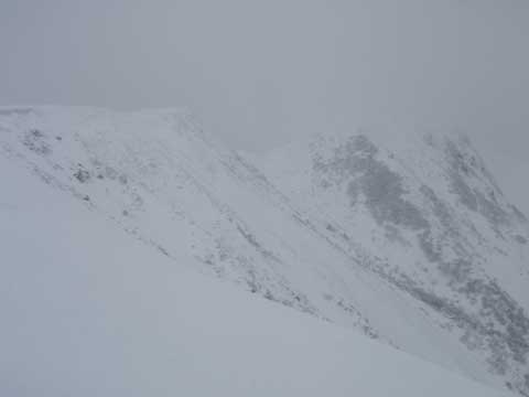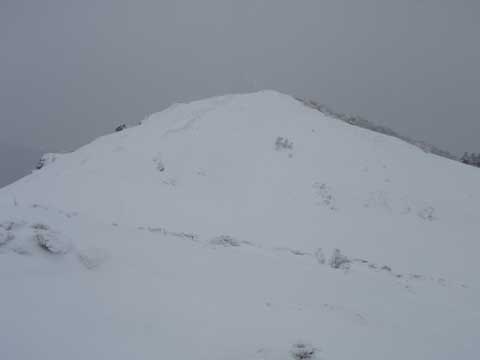 牛の背の山稜が だだっ広くて 雪に覆われ、進むべき 目標となる 多くの
