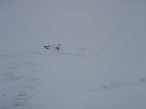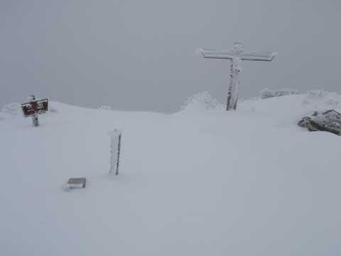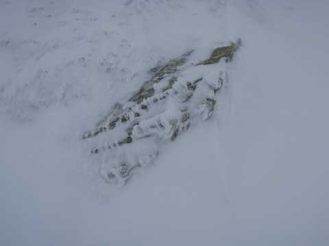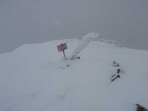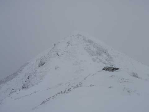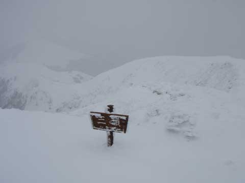 頂ではガスと風雪で何も見えなかった。