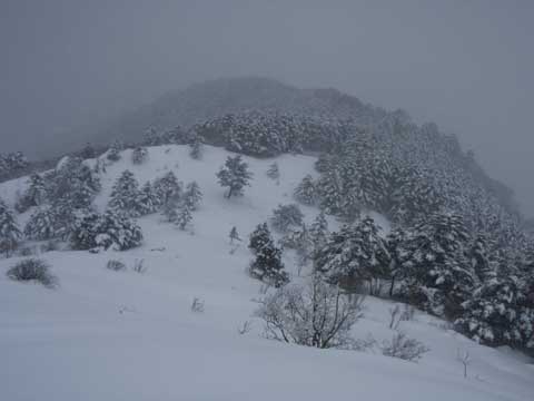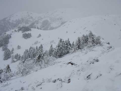 灌木 岩など すっかり雪に埋まっていて低視程ではルートファインディング