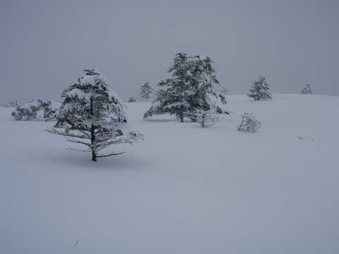朝のうち 少し視界があったが すぐ雪が降り出す。