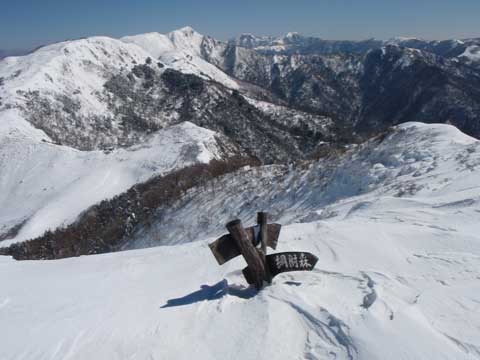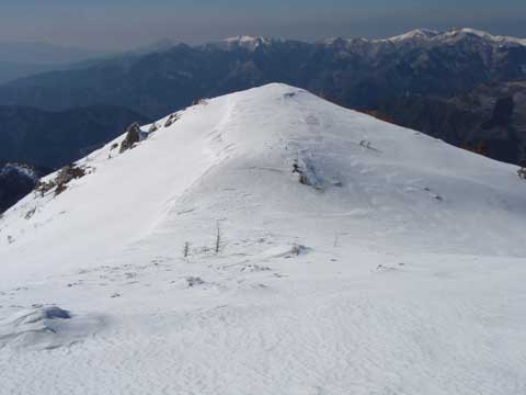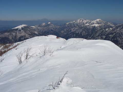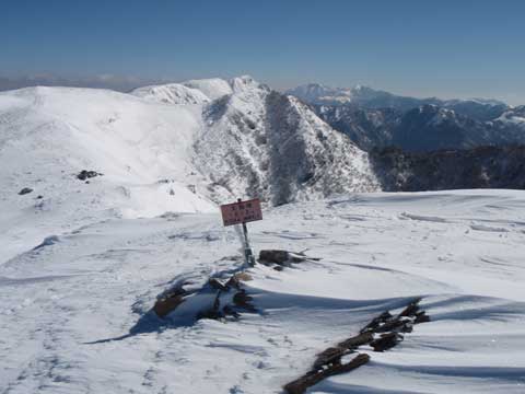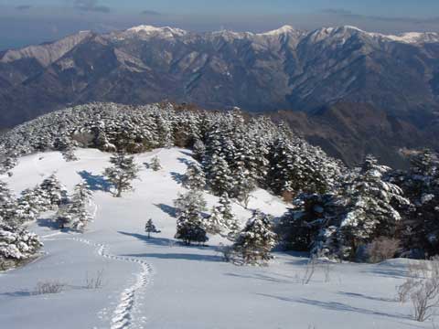 三嶺 「-0.3度 1.3m 西風弱い。快晴。剣山 次郎笈 天狗塚 矢筈山系など