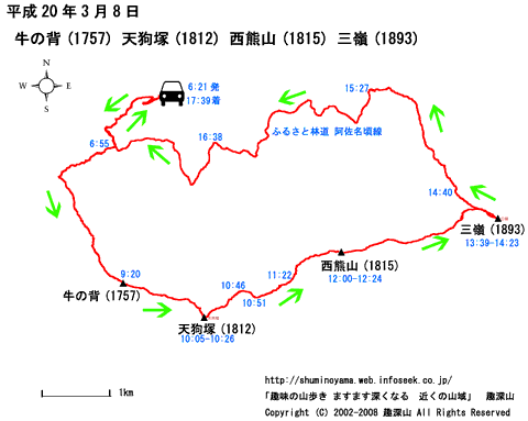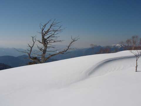 HOME > 山行記録 >積雪期>牛の背(1757) 天狗塚(1812) 西熊山(1815) 三嶺(1893) 1806P経由 > 平成20年3月8日