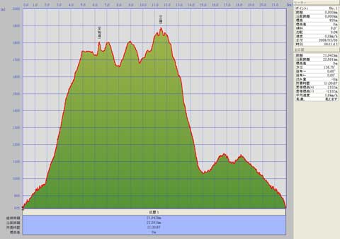 9-14:23) --1806標高点 14:40 --- ふるさと林道 阿佐名頃線 15:27 --西山