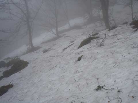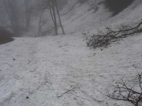 矢筈山 北東面 、膳棚 北面 は やはり 雪が多い。