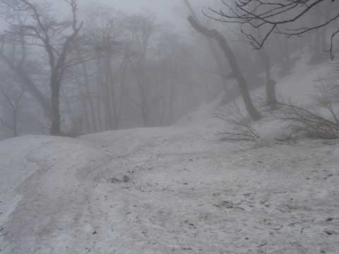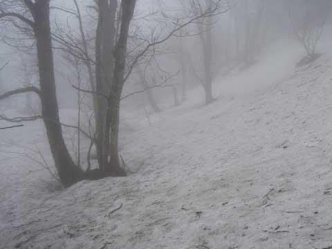 矢筈山 「プラス2.3度 風2m ガス。何も見えず。」