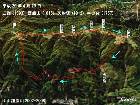 HOME > 山行記録 >三嶺(1893) 西熊山(1815) 天狗塚(1812) 牛ノ背(1757) > 平成20年4月29日