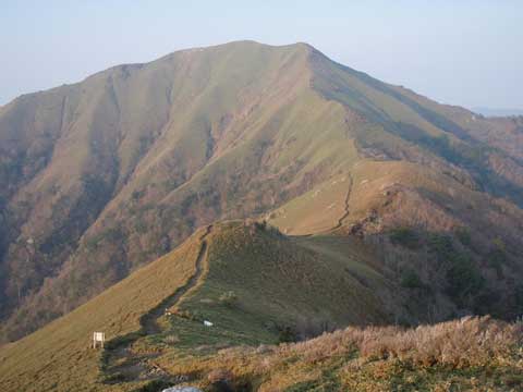 三嶺 池から 三嶺ヒュッテ 見ノ越 剣山方面を見る。